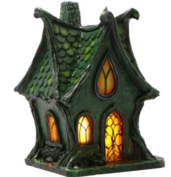 A gothic-style fairy cottage with LED lighting to create a magical ambiance.